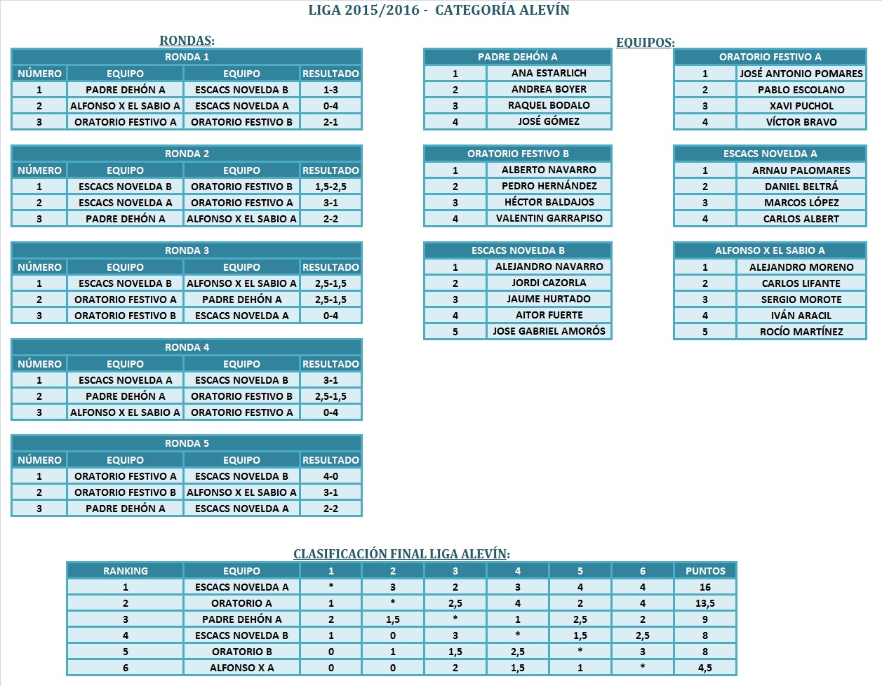 del Curs Escolar 2015/16 del Club Escacs Novelda.